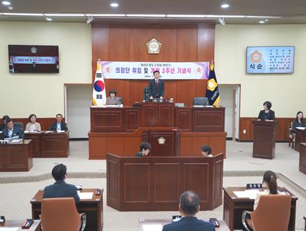 관내 기관단체장들을 내빈으로 초청한 기념식에서 최찬훈 의장은 취임사를 통해 의장으로서의 막중한 역할을 성실히 수행할 것을 약속하며, 제9대 전반기 의회를 훌륭히 이끌었던 이경민 전 의장에게 감사의 말을 전했다.