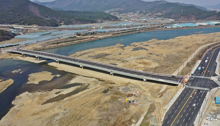 황금대교는 폭 20m, 연장 371m 규모의 왕복 4차선 교량으로 총 사업비 410억원이 투입됐다.