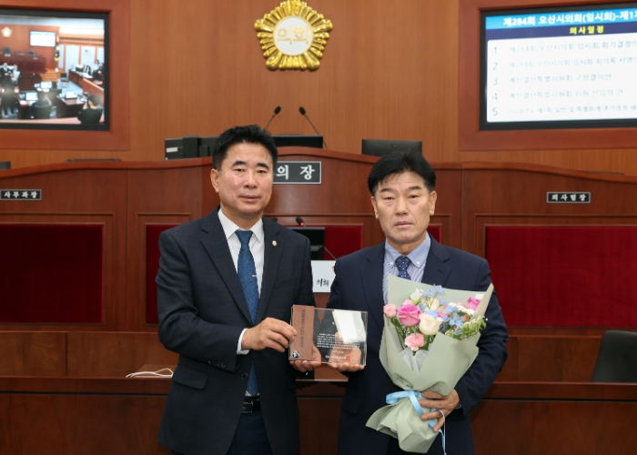 ▲ 제284회 오산시의회 임시회 명예의장으로 조근호 오산시 지역자율방재단장 위촉 |