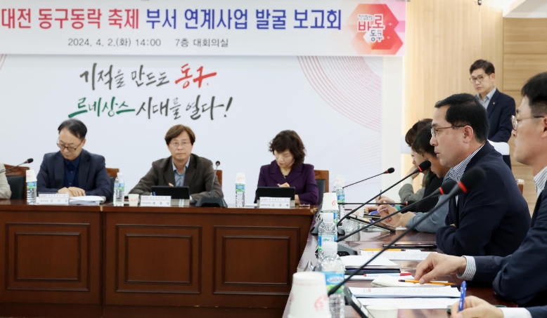 [뉴스서치] 대전 동구는 2일 구청 대회의실에서 ‘2024년도 제2회 대전 동구동락 축제’의 성공적인 개최를 위해, 부서 연계사업 발굴 보고회를 개최했다.