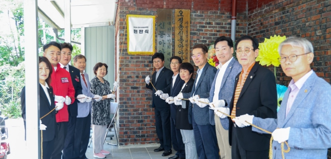 이번 현판식에는 최충규 대덕구청장을 비롯해 시·구의원과 경로당 회원 및 지역주민 80여 명이 참석해 오정동신동아아파트경로당의 전국 모범경로당 선정을 축하했다.