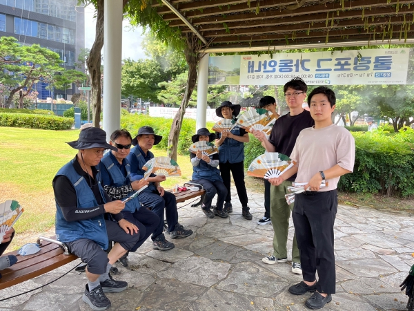 [뉴스서치] 대구 중구는 지난 2일 연일 대구지역에 폭염주의보가 발효된 가운데 국채보상공원 야외 무더위쉼터에서 관계 공무원 등 10여 명이 ▲폭염피해예방 행동요령, ▲무더위쉼터 이용방법 등을 안내하는 폭염 피해예방 홍보 캠페인을 진행했다.