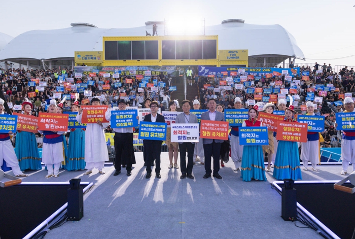 8월 2일 오후 8시 제18회 철원 화강 다슬기축제 개막선언 종료 후 철원군민 모두의 염원이 담긴 철원 국제 스피드 스케이팅 경지장 유치를 위한 퍼포먼스가 무대가 마련됐다.