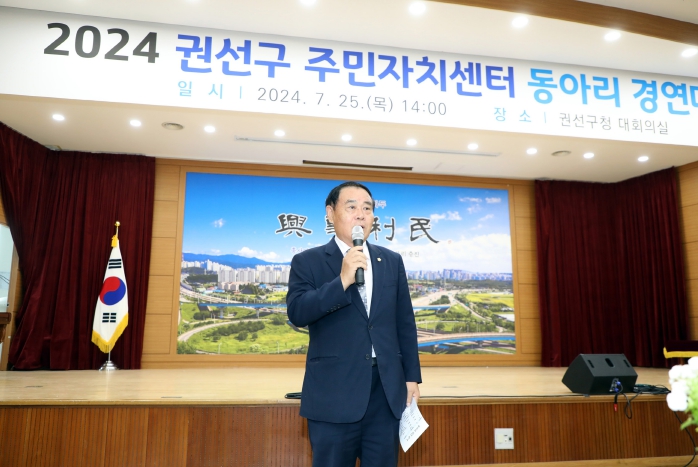 [뉴스서치] 수원특례시의회가 25일 권선구청 대회의실에서 열린 권선구 주민자치센터 동아리 경연대회에 참석하여 관계자와 참가 주민들을 격려했다.