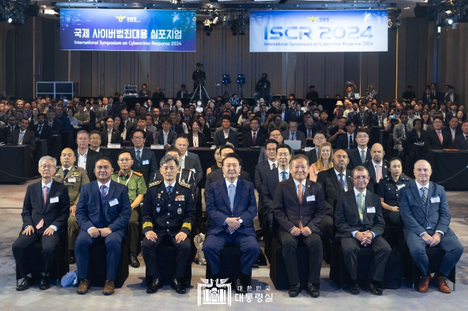 대통령은 축사에서 AI를 비롯한 신기술이 눈부시게 발전하면서 사이버범죄에 맞서는 일도 갈수록 어려워지고 국가가 배후에 있는 해킹조직이 사이버공격을 벌여 개인과 기업은 물론 국가안보를 위협하는 수준에 이르렀다고 평가했다.