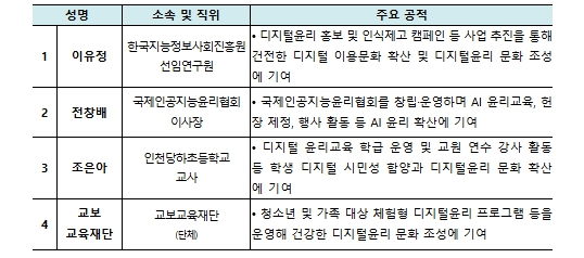 | ▲ ‘2025년 디지털윤리대전’ 수상자- 디지털윤리 문화조성 유공(4점) |