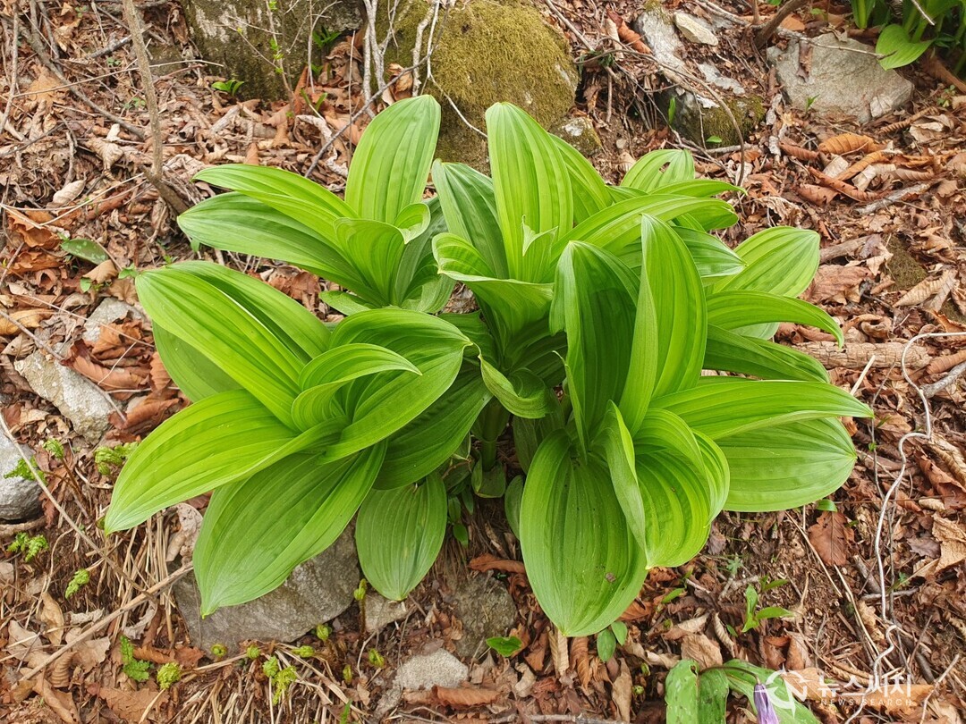 명지산 능선에 만난 들풀 박새. 명지3봉부터 명지2봉, 명지산 정상에 이르는 능선에는 여러 종류의 들꽃과 들풀이 서식하고 있다. 그 중 ‘박새’라는 식물이 있다. ‘박새’는 백합과의 여러해살이풀로서 줄기는 곧게 서고 속이 비었다. 잎은 촘촘히 어긋나고 평행맥이 있으며 끝이 뾰족하게 넓은 타원형이고 아랫부분은 줄기를 감싸고 있다. 7~8월에 연한 황백색의 꽃이 줄기 끝에 원뿔 모양으로 핀다. 뿌리줄기에는 독이 있어 농업용 살충제 또는 한약재로 쓰인다.