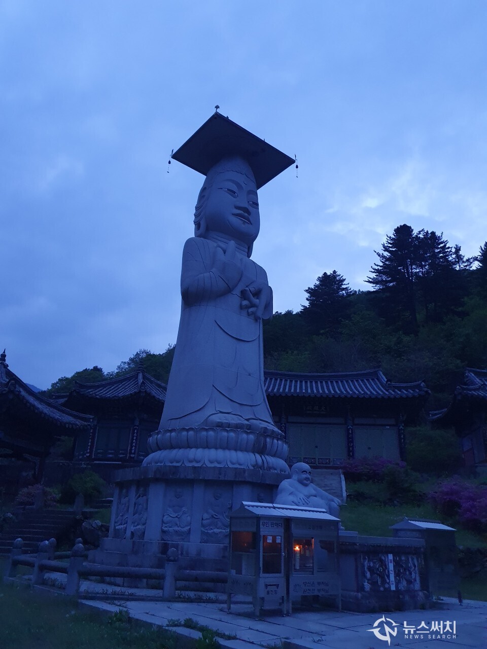 다시 발걸음을 재개하였고 임도에 합류한 뒤 오후 7시 13분 ‘명지폭포’를 지났고 계속 하산길을 재촉하여 오후 7시 36분 ‘승천사(昇天寺)’에 도착하였다. ‘승천사’에는 커다란 크기의 미륵불이 조성되어 있었는데, 왠지 논산 관촉사 미륵보살입상과 많이 닮아 있었다.