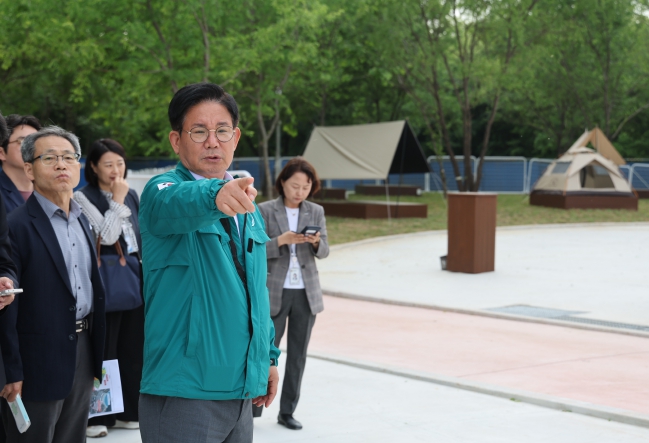 이날 박강수 마포구청장은 반려동물이 마음껏 뛰어놀 놀이터와 캠핑데크, 반려견 화장실 등 캠핑장 곳곳을 점검하고 안전에 대한 당부를 전했다.