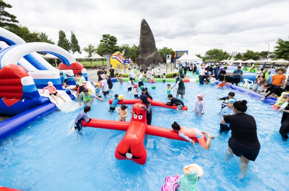 계양구의 대표 명소 계양아라온에서 지난해에 이어 두 번째로 열린 워터축제에는 장마가 끝나고 본격적인 무더위를 맞아 5만 8천여 명의 많은 구민과 방문객들이 축제장을 찾아 여름 물놀이를 즐겼다.