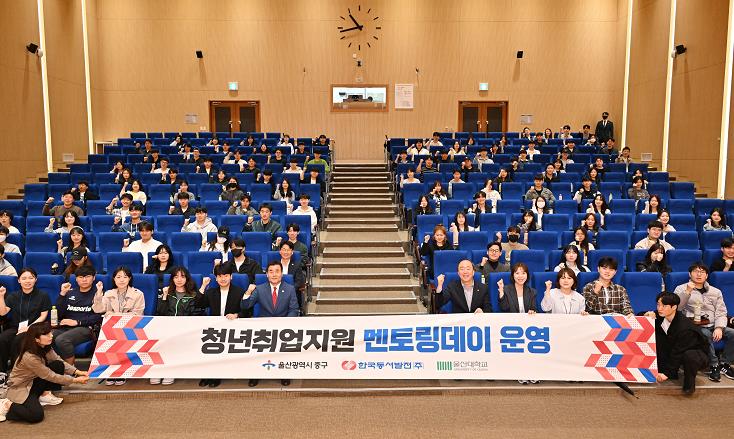 [뉴스서치] 울산 중구가 한국동서발전, 울산대학교 대학일자리플러스센터와 함께 4월 29일 오전 11시 한국동서발전에서 청년 취업 지원을 위한 ‘멘토링 데이’ 행사를 개최했다.