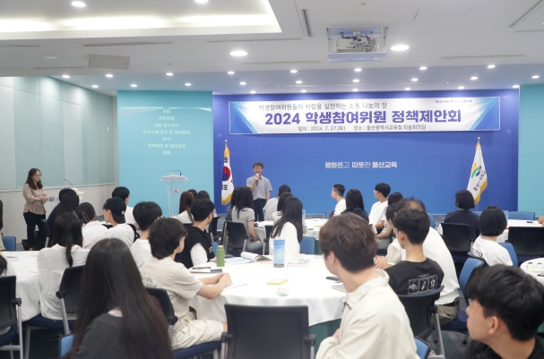 울산교육청은 27일 시교육청 외솔회의실에서 초‧중‧고 학생 대표 200명이 참여한 가운데 ‘학생참여위원 정책제안회’를 열었다. 오전에는 중‧고등학생, 오후에는 초등학생으로 나눠 진행했다.