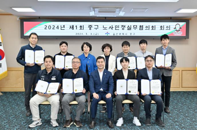 [뉴스서치] 울산 중구가 5월 3일 오후 3시 중구청 중회의실에서 2024년 제1회 중구 노사민정실무협의회 회의를 열었다.