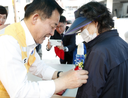 ▲ 서구 어버이날 맞이 카네이션 전달 장면 |