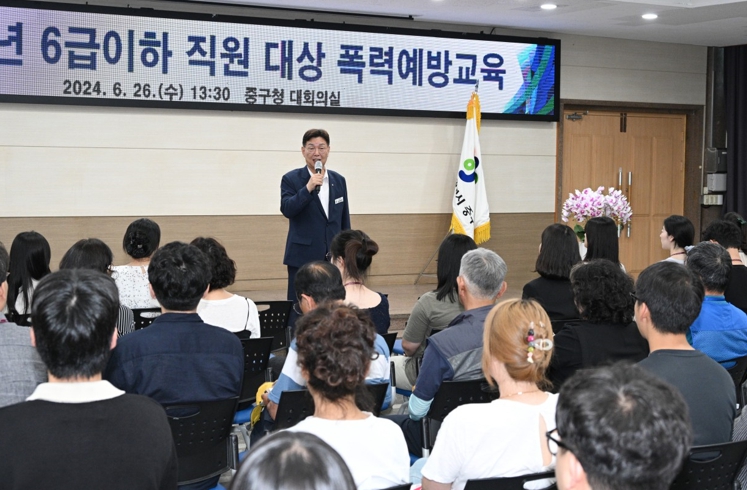 중구는 매년 전 직원을 대상으로 폭력예방 통합교육을 실시하고 있으며 특히, 5급 이상 간부 공무원을 대상으로 맞춤형 교육을 별도 추진하는 등 폭력 예방 강화를 위해 노력하고 있다.