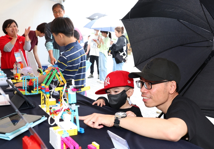 ▲ 『제102회 유성 어린이 한마당』 행사를 찾은 가족들이 체험부스를 즐기고 있다. |