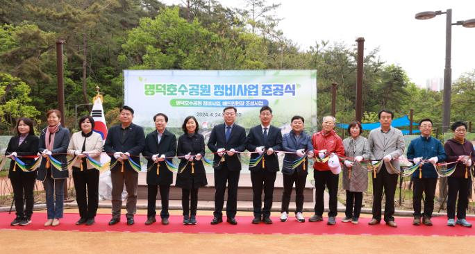 ▲ 명덕호수공원 정비사업 준공식_테이프커팅식 |