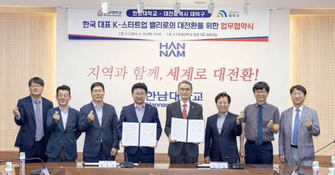[뉴스서치] 대전 대덕구는 지난 30일, 한남대학교와 ‘한국 대표 K-스타트업 밸리로의 대전환을 위한 업무협약’을 체결했다고 밝혔다.