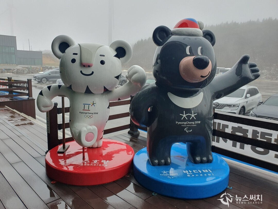 평창동계올림픽 마스코트, 수호랑과 반다비. 2018년 2월 동계올림픽은 강원도 평창 등에서 열린 세계인의 축제였다. 456번 지방도에 있는 대관령마을휴게소는 ‘강원도 평창군 대관령면 횡계리’에 있는데 이곳에는 지금도 평창동계올림픽의 마스코트인 ‘수호랑’과 ‘반다비’가 서 있다. ‘수호랑’은 백호(白虎)이고, ‘반다비’는 반달 가슴곰 이다.