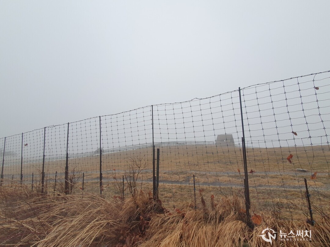 필자는 ‘대관령양떼목장’ 철조망 울타리 길을 뚜벅뚜벅 걸어 지난 후 오후 5시 15분 국립기상과학원 ‘구름물리선도관측소’에 도착하였는데, 이때 안개가 너무 자욱하게 끼어 앞을 분간하기 힘들었지만 조금 시간이 지나자 바람이 자욱한 안개를 흐트러뜨려 시야가 회복되었다.