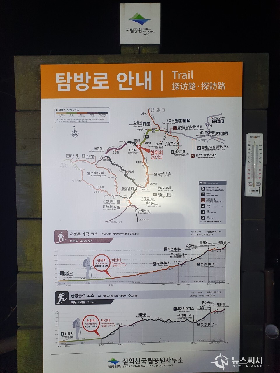 [뉴스써치] 설악산(雪嶽山)은 우리나라 3대 명산 중 하나로 강원도 속초시, 인제군, 양양군에 걸쳐 있다. 설악산의 수많은 봉우리 중 가장 높은 봉우리는 해발 1,708m 높이의 ‘대청봉’이다. 설악산은 산이 크고 능선이 많아서 많은 능선종주 코스가 있다. 그 중 기자가 선호하는 코스는 ‘서북능선 종주코스’와 ‘공룡능선 종주코스’이다.