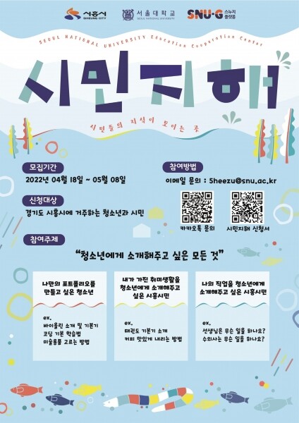 참여 프로젝트 시즌2는 시흥시 초중고 학생, 시민, 교사라면 누구나 신청할 수 있으며 5월 8일까지 스누지 홈페이지에서 신청하면 된다.