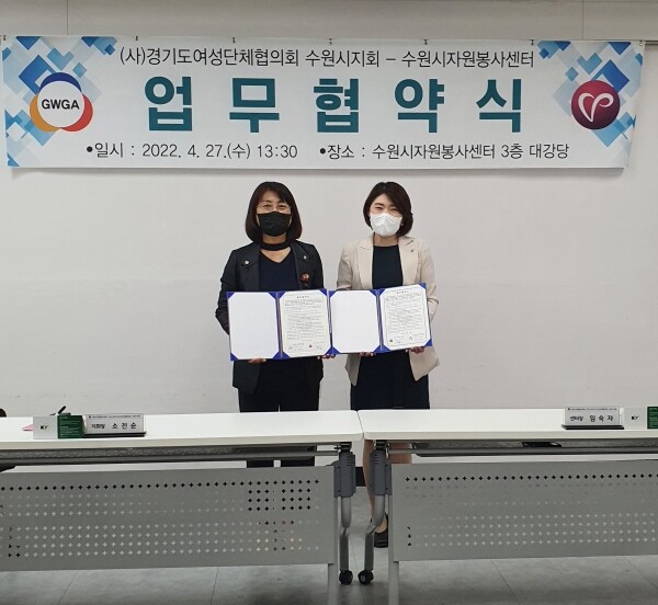 이날 협약식에는 임숙자 수원시자원봉사센터장, 소진순 경기도여성단체협의회 수원시지회장, 수원시 여성정책과 관계자 등 10여명이 참석했다.