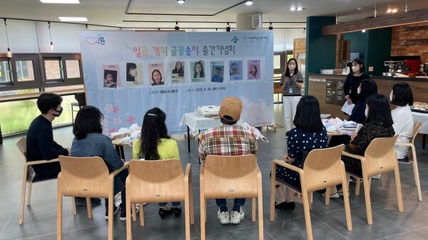 지난 2월부터 4월까지 수강생 7명을 대상으로 ‘나를 알아가는 글쓰기’ 프로그램을 통해 기획 글쓰기 교정·교열 표지 디자인 등 전 과정에 참여해 만든 ‘일곱 개의 글 꽃송이’를 출간했다.