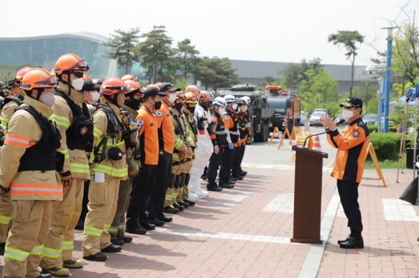이날 종합훈련에는 오병권 경기도지사 권한대행도 참석해 훈련상황을 참관하며 참가 인원들을 격려하기도 했다.
