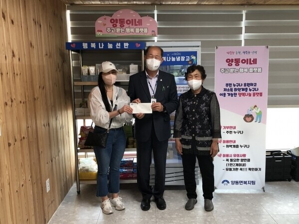 해당 사업은 양동면사무소 내에 나눔 선반과 냉장고를 설치해 어려운 이웃이 한끼 식사를 해결하는데 도움을 주고 복지우체통으로 복지사각지대 취약계층을 발굴하고 지원하도록 추진된다.