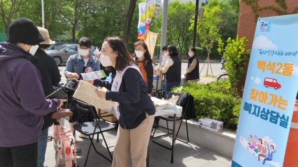 이번 ‘찾아가는 복지상담소’는 백석2동 행정복지센터와 고양하모니ON 업무제휴 협약을 맺은 고양시 흰돌종합사회복지관과 함께 민·관 합동으로 행정복지센터 및 복지관 인근에서 진행됐다.