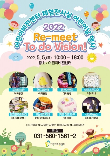 먼저 어린이비전센터에서 ‘Re-meet To do Vision’이라는 주제로 로봇 탑승 체험, 가족사진 포토월 스튜디오, 과일케이크 및 꽃바구니 만들기, 상상 마술쇼 등의 프로그램이 진행되며 회전목마, 라바파크 관람차 등의 놀이기구도 운영할 예정이다.