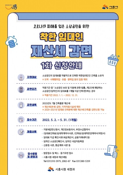 필요 서류 등 자세한 사항은 시흥시 홈페이지 및 시흥시청 세정과 재산세팀으로 문의하면 된다.