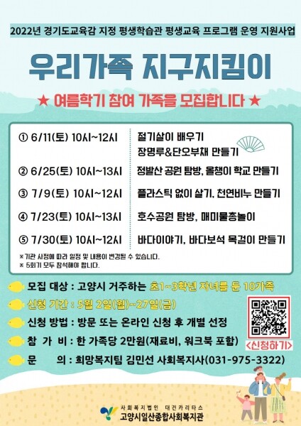 고양시 일산종합사회복지관, ‘우리가족 지구지킴이’ 참여 가족 모집