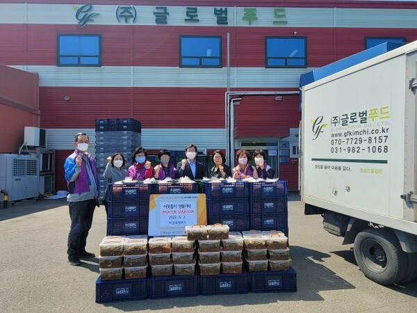 ㈜글로벌푸드는 고촌읍 향산리에 위치한 김치 전문 제조기업으로 김포시에 기부활동을 계속해왔던 차에 5월 가정의 달을 맞아 공장 소재지인 고촌읍에 기부를 결정했다.