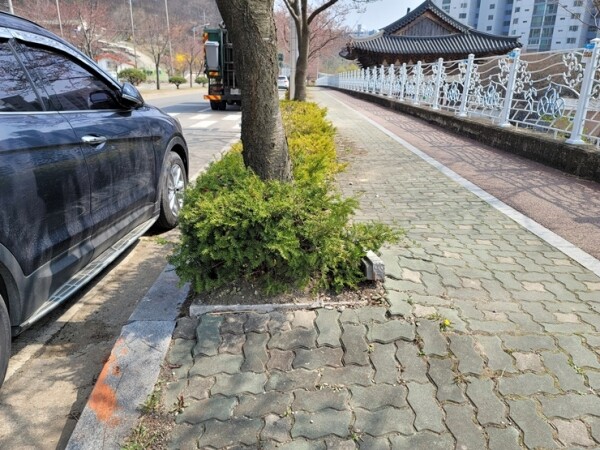 동신아파트 측면 도로변 주차장 구간 녹지화단의 경우 주차장과 보도를 잇는 통행로가 없어 녹지화단 무단통행으로 인한 훼손이 발생 돼, 보완 조치로 녹지대 기능유지와 주차장 이용자들이 통행할 수 있는 잔디 식재를 추진할 예정이다.