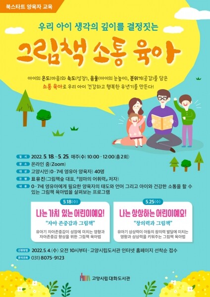 [뉴스써치] 고양시 대화도서관이 5월부터 시작하는 북스타트와 연계해 0-7세 영유아 양육자를 위한 프로그램 ‘그림책 소통 육아’를 5월 18일부터 5월 25일까지 운영한다.