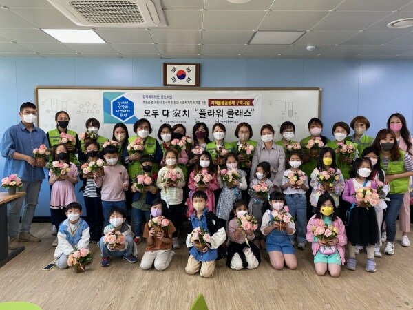 이날 플라워클래스는 다함께돌봄센터 4호점 이용 아동과 고덕동지역사회보장협의체 위원 등 35명이 참여했으며 클래스를 통해 만든 꽃바구니는 관내 홀몸 어르신들에게 전달해 상호간의 유대관계 형성 및 정서적 안정과 촘촘한 돌봄 체계 구축에 기여하는 소중한 시간이었다.