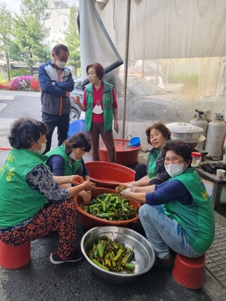 새마을부녀회는 경제적으로 어려우시거나 혼자 사시는 어르신을 위해 월 3회씩 직접 밑반찬을 만들어 배달하며 결식을 예방하고 동시에 안부를 확인하는 등 동네 복지사각지대를 없애고 온정을 나누는 데 앞장서고 있다.