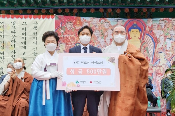 성행 주지 스님은 “부처님이 이 땅에 오신 뜻을 실천하기 위해 소년소녀가장돕기, 청소년 지도 등에 앞장서고 있는 마이트리의 이름으로 기부를 하게 됐다”고 전했다.