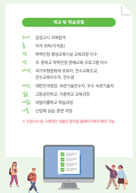 이제까지는 검정고시 제도가 학교 밖에서 학력 인정을 받을 수 있는 유일한 선택이었지만 꿈 이음 사업으로 인해 학교 밖 청소년들이 학력 인정을 받을 수 있는 새로운 길이 열린 것이다.