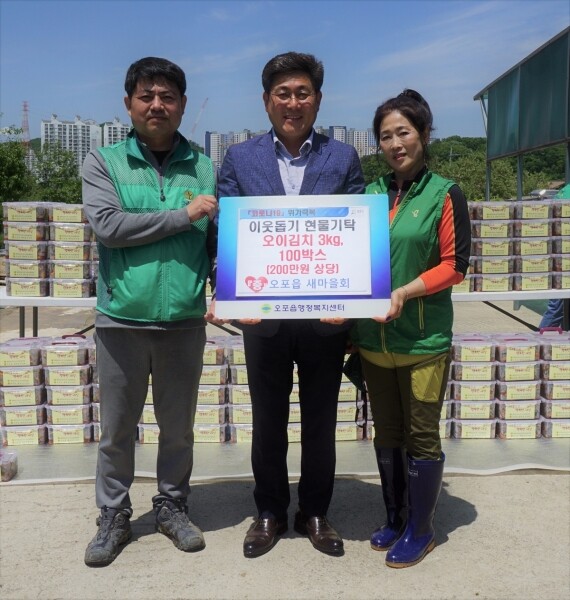 이날 기탁한 오이김치는 오포읍 새마을회 회원들이 이른 아침부터 모여 직접 오이김치를 담그며 이웃사랑을 실천해 그 의미를 더했다.