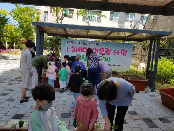 이 날 행사는 자라나는 아동들의 정서함양과 어르신 세대간 어울림을 목적으로 대한노인회 김포시지회의 후원으로 진행됐으며 참석한 노인회원 및 어린이집 재원아동 30여명은 어린이집 마당에 마련된 화단에 고추와 상추 등을 심으며 즐거운 시간을 보냈다.