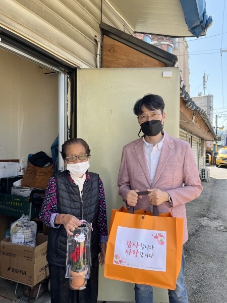 이번 사업은 가정의 달을 맞아 외로움을 느끼고 있는 저소득 어르신 50명을 대상으로 카네이션 화분과 제철 야채, 배즙, 유과, 마스크 등으로 구성된 선물 꾸러미를 전달해 어르신들이 마음까지 풍족한 시간을 보낼 수 있도록 지원하는 사업이다.