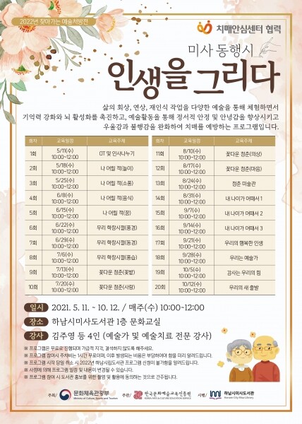하남시미사도서관과 하남시치매안심센터가 각 20회씩 총 40회 프로그램을 5월 11일부터 10월 12일까지 진행하게 된다.