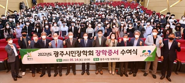 이날 장학증서를 수여 받은 대상은 2022년도 광주시민장학생으로 선발된 대학생 154명 고등학생 84명 중학생 27명 등 모두 265명에게 장학금 5억6천220만원을 지급했다.