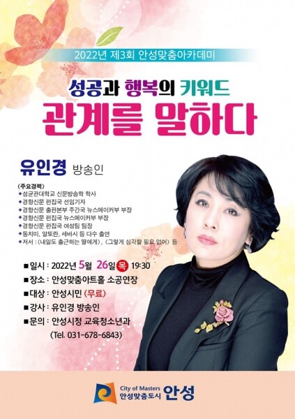 방송인 유인경 씨를 강사로 초청해 ‘성공과 행복의 키워드, 관계를 말하다’란 주제로 진행한다.