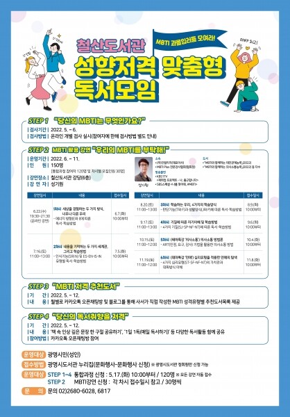 [뉴스써치] 광명시 철산도서관은 5월부터 12월까지 성격유형검사를 활용해 개인별 성향을 분석하고 그에 맞는 독서를 독려하는 성향저격 맞춤형 독서모임을 운영한다.