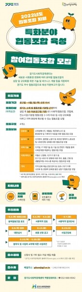 신청 자격요건은 경기도 내 소재하고 협동조합 기본법에 근거해 공고일 기준 3년 이상 설립된 협동조합이거나 협동조합연합회 또는 2~3개 협동조합으로 구성한 컨소시엄이다.