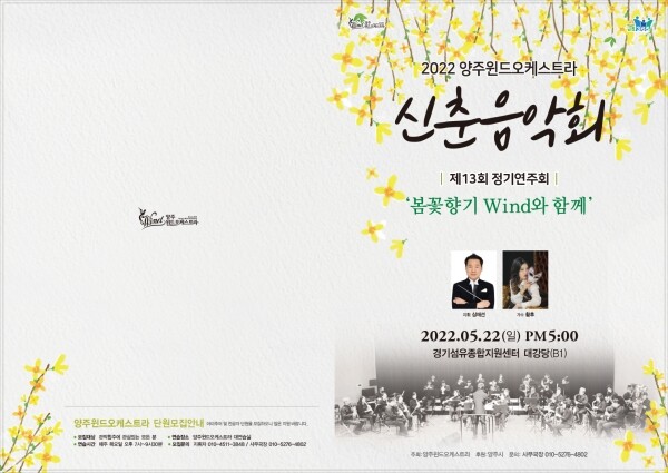 시 관계자는 “음악의 다양성과 심도 깊은 해석에 음악적 가치관을 둔 심재선 지휘자와 지역의 실력 있는 음악인이 전하는 클래식과 아름다운 우리 가요, 다양한 프로그램은 산뜻한 봄 양주시민의 싱그러운 마음을 상기시키기에 충분할 것”이라며 “앞으로도 연주회를 통해 시민들이 다양한 음악을 접하고 문화향유의 기회를 누릴 수 있도록 노력하겠다”고 말했다.